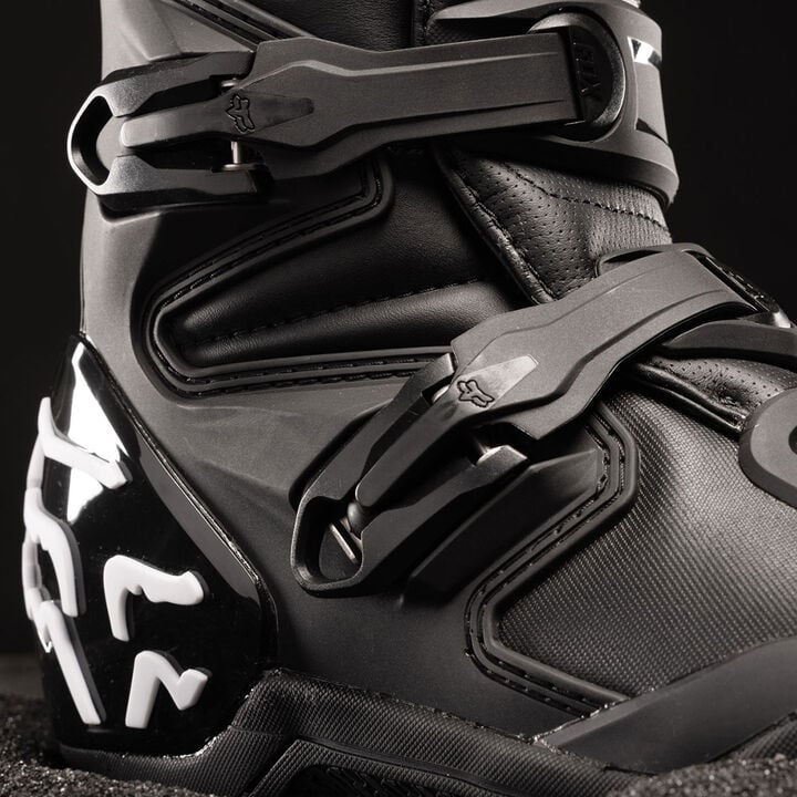 Unsere neu entwickelten Comp Boots mit optimiertem Profil bieten sofortigen Tragekomfort und eine herausragende Passform. Die Comp mit allen grundlegenden Features für den MX-Sport sind absolut zuverlässige Dirtbike-Stiefel für Piloten aller Levels. Das Obermaterial aus Mikrofaser-Kunstleder bietet überragenden Komfort, Passform und Strapazierfähigkeit, während das Innenfutter aus atmungsaktivem Mesh für zusätzlichen Komfort und Atmungsaktivität sorgt. Diese Stiefel garantieren sowohl auf dem Track als auch in Offroad-Situationen sicheren Halt und Schutz. Zudem bieten Schienbein-, Fußgelenk-, Waden- und Verbrennungsschutz sowie Zehen- und Fersenkappe aus TPU genau die Abdeckung, nach der du suchst. Das neue, verstellbare Verschlusssystem mit vier Schnallen bietet sicheren Halt und eine zuverlässige Passform. Zusätzlich sorgt die Innensohle aus Verbundmaterial für Stabilität und Halt von den Zehen bis zur Ferse und in seitlicher Richtung auf den Fußrasten, während unser exklusives Fox Positac™-Kautschukverbund der Außensohle verbesserte Beständigkeit und unschlagbaren Grip verleiht. Das Beste von allem: Die Comp können neu besohlt werden, wodurch sich die Lebensdauer dieser unentbehrlichen Performance-Crossboots zusätzlich verlängert.