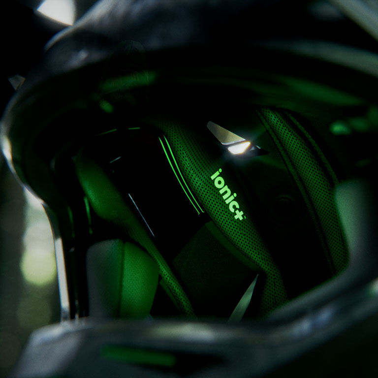 • Das herausnehmbare, waschbare Ionic+ ® Innenfutter, das Komfortfutter und die Wangenpolster sind antimikrobiell und geruchshemmend, während sie Feuchtigkeit vom Kopf wegleiten